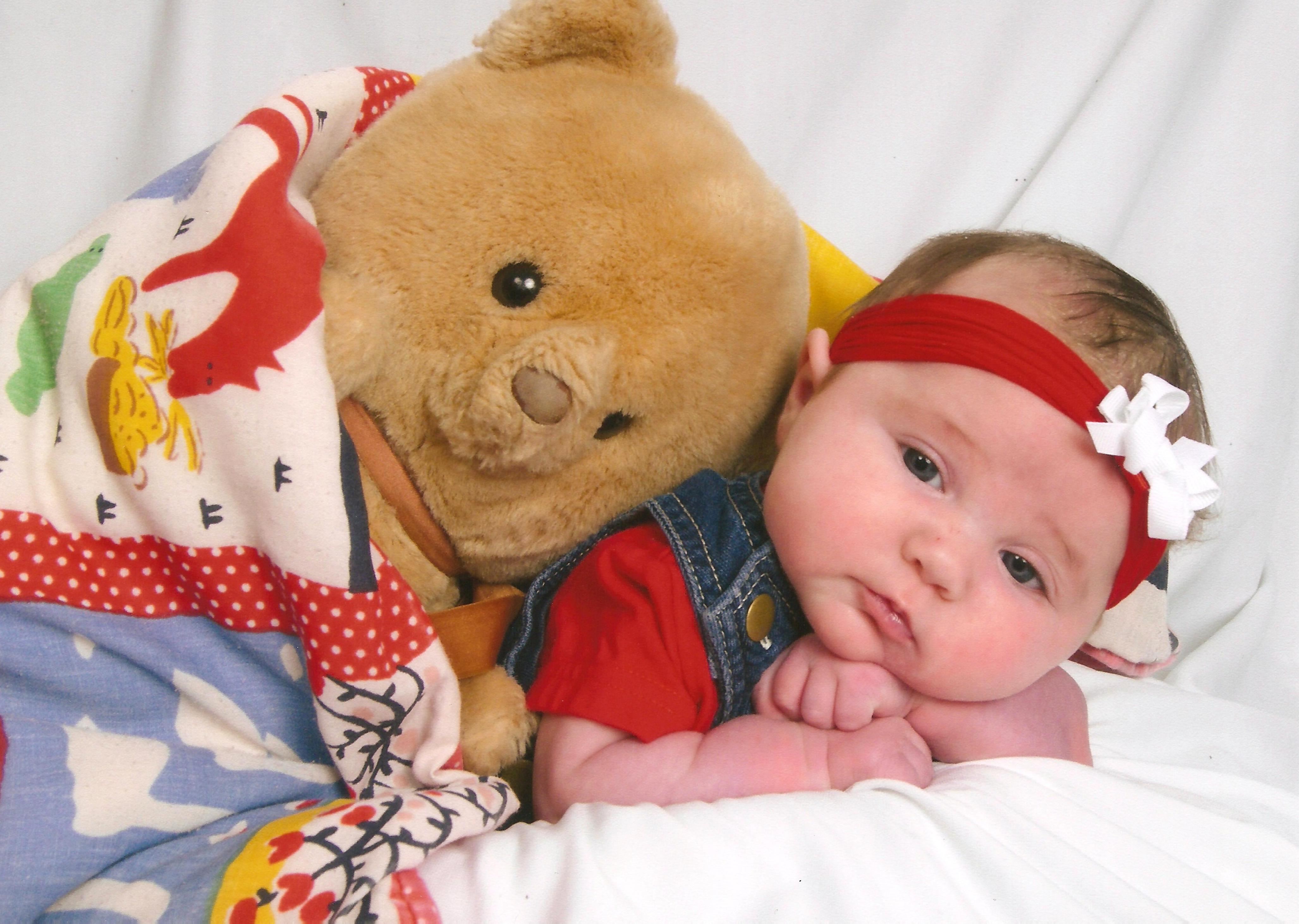 Includes Emily's baby blessing, her 2 month shots, and professional pics (2 months) taken at JCPenney's Portrait Studio. The cool thing about those last pics is that they include Keith's baby blanket and teddy. How cool is that!