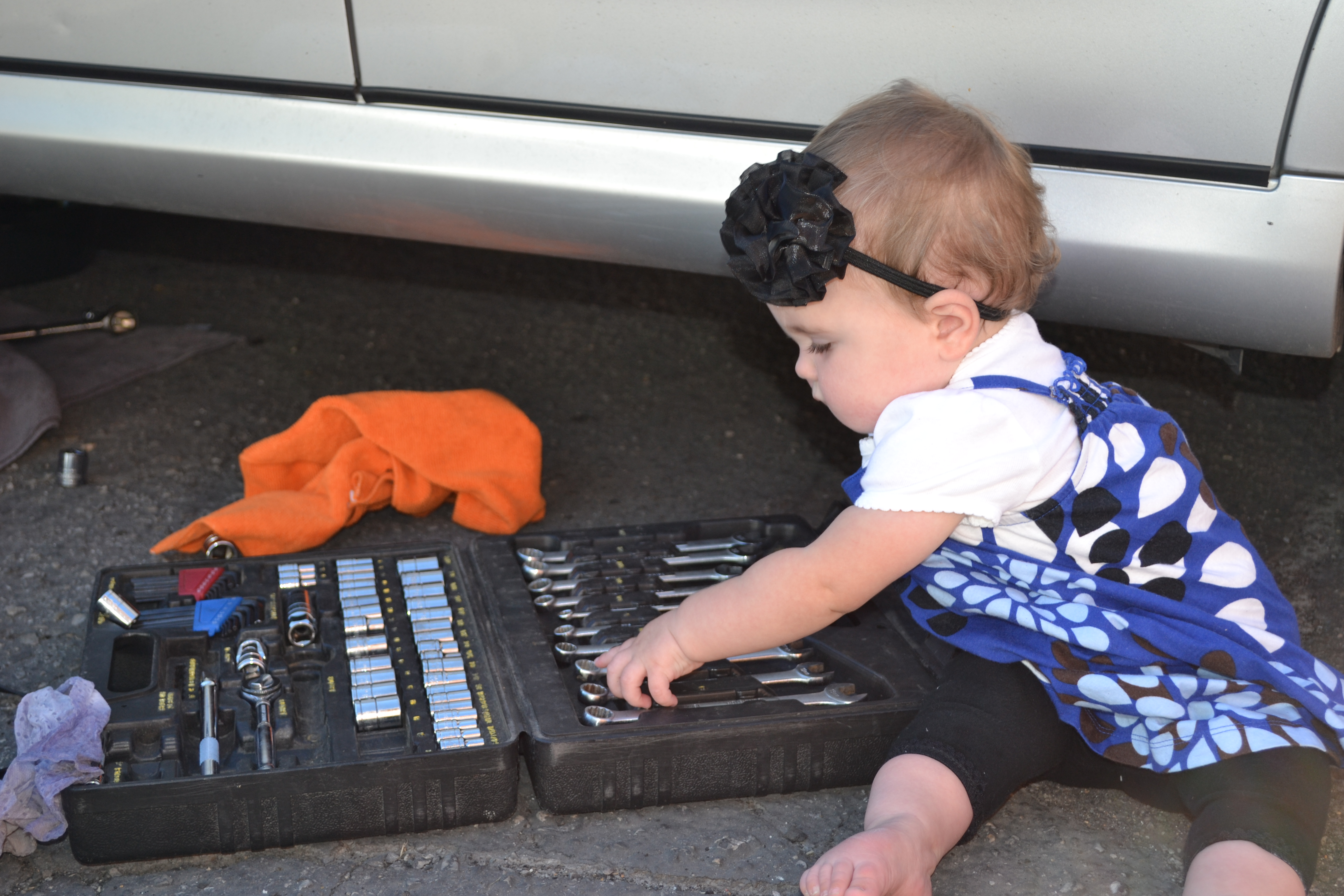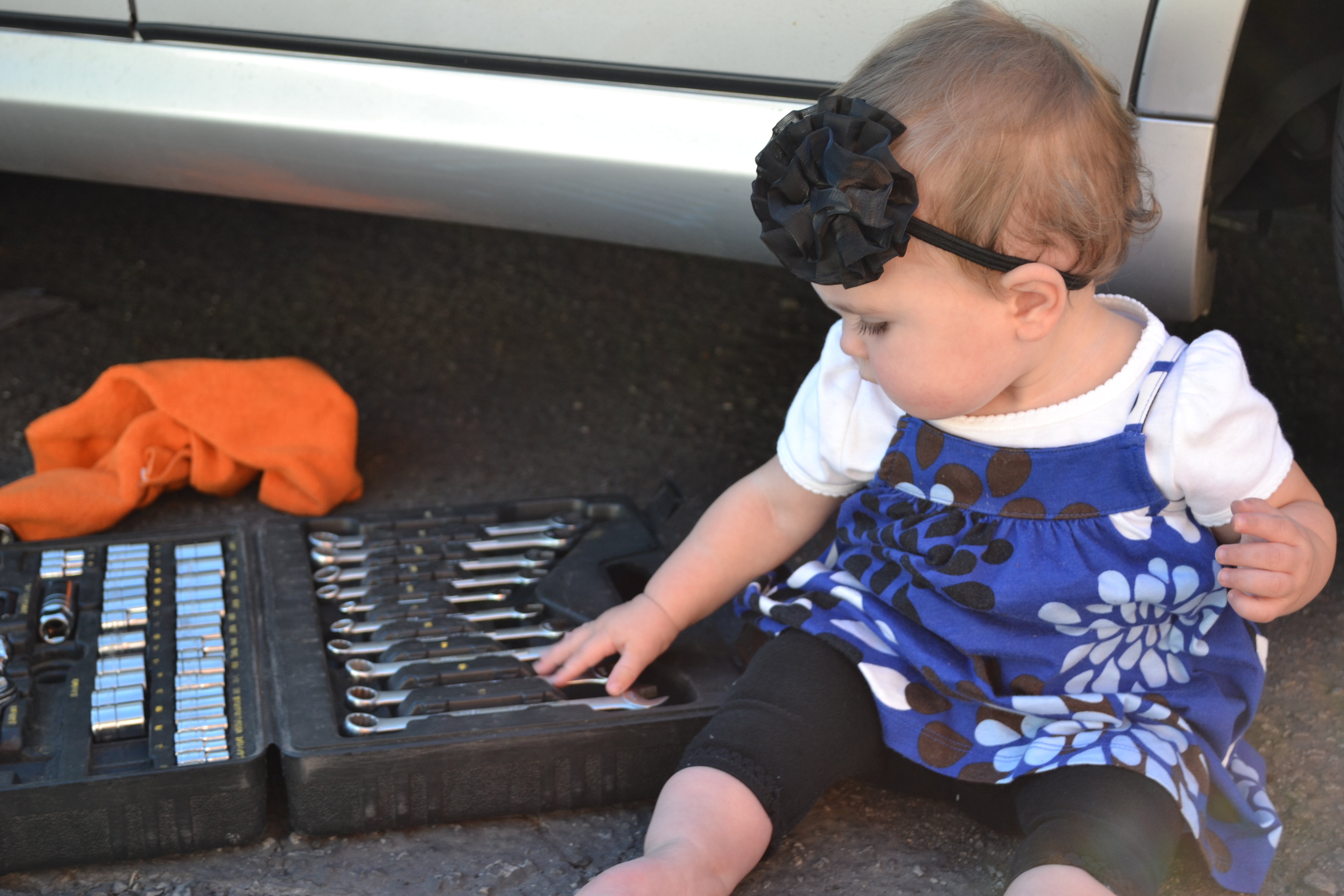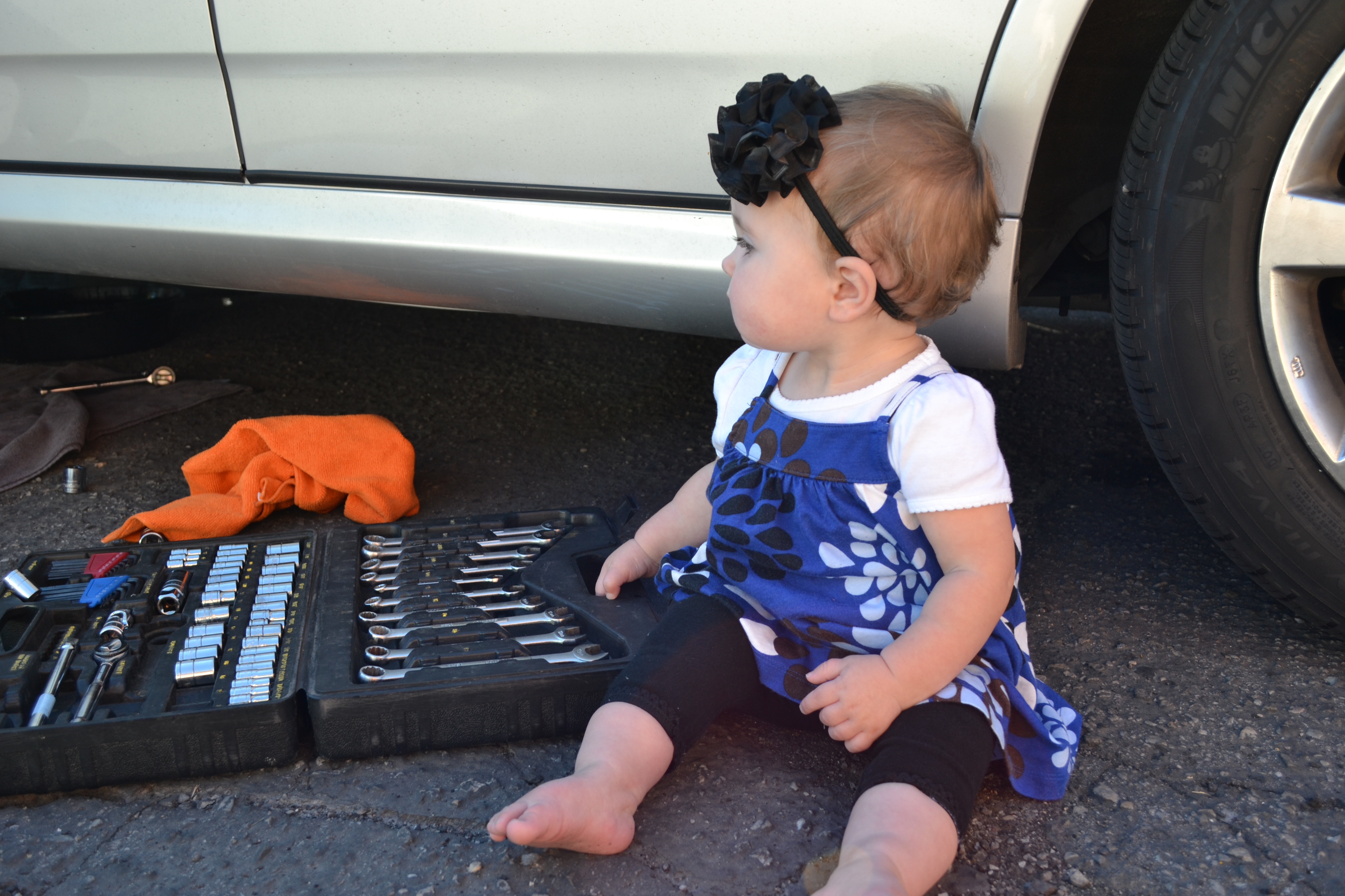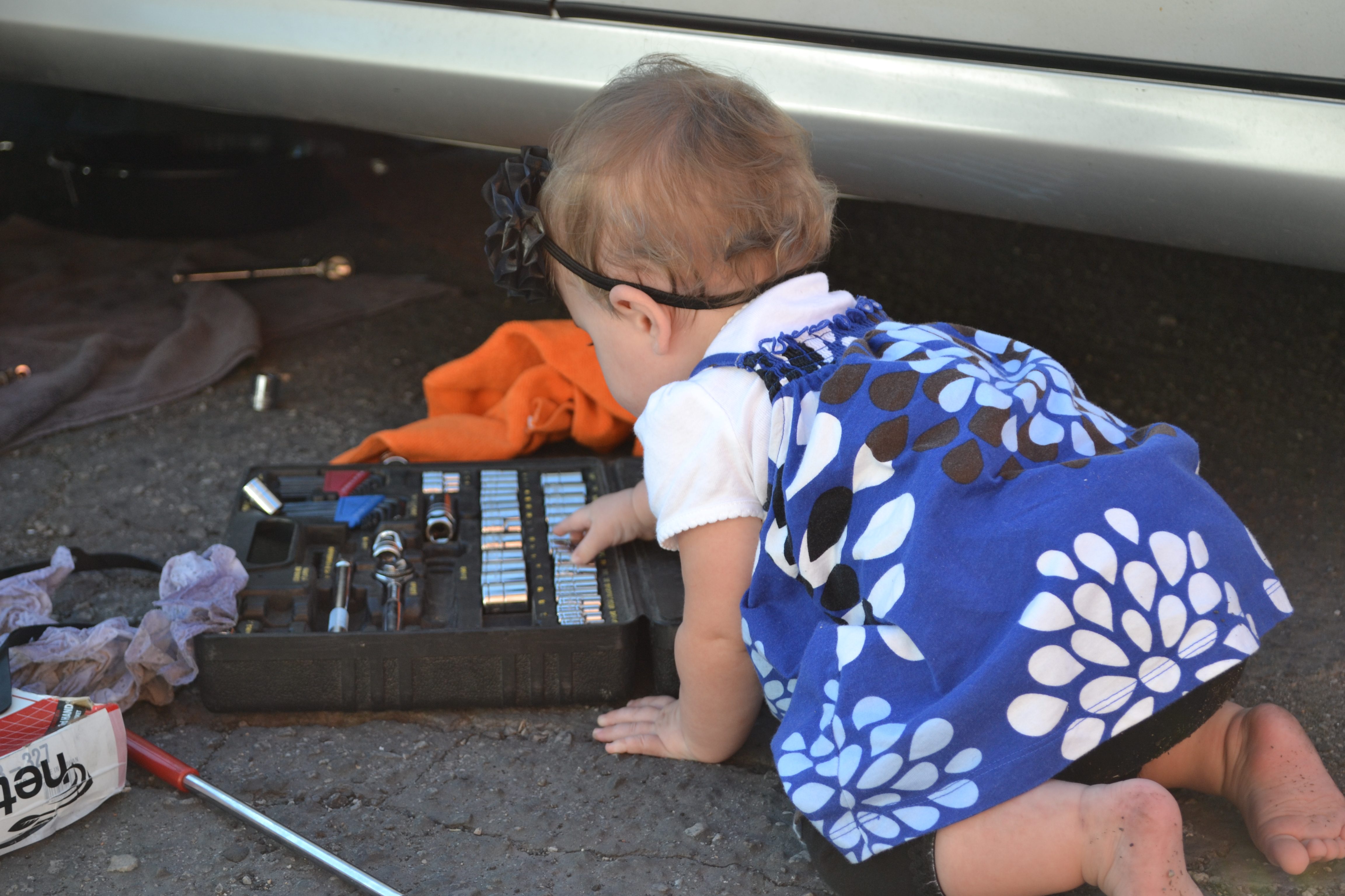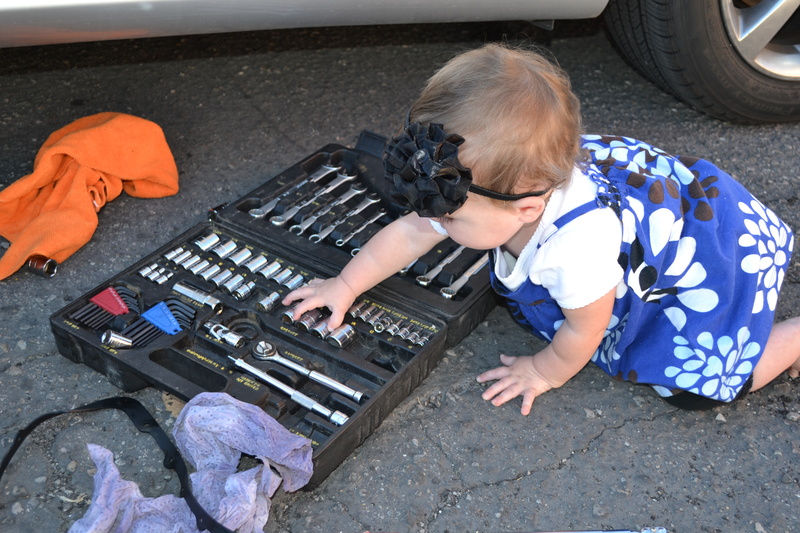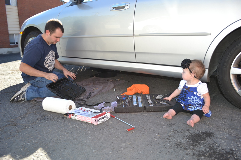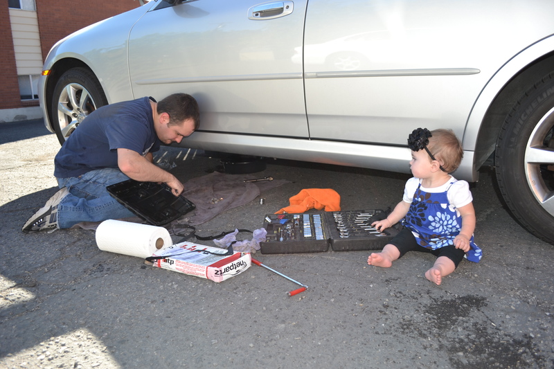 For some reason I can't resist snapping pictures of Keith working on his car, especially when Emily comes to play with the tools. These pics were taken in September 2011.