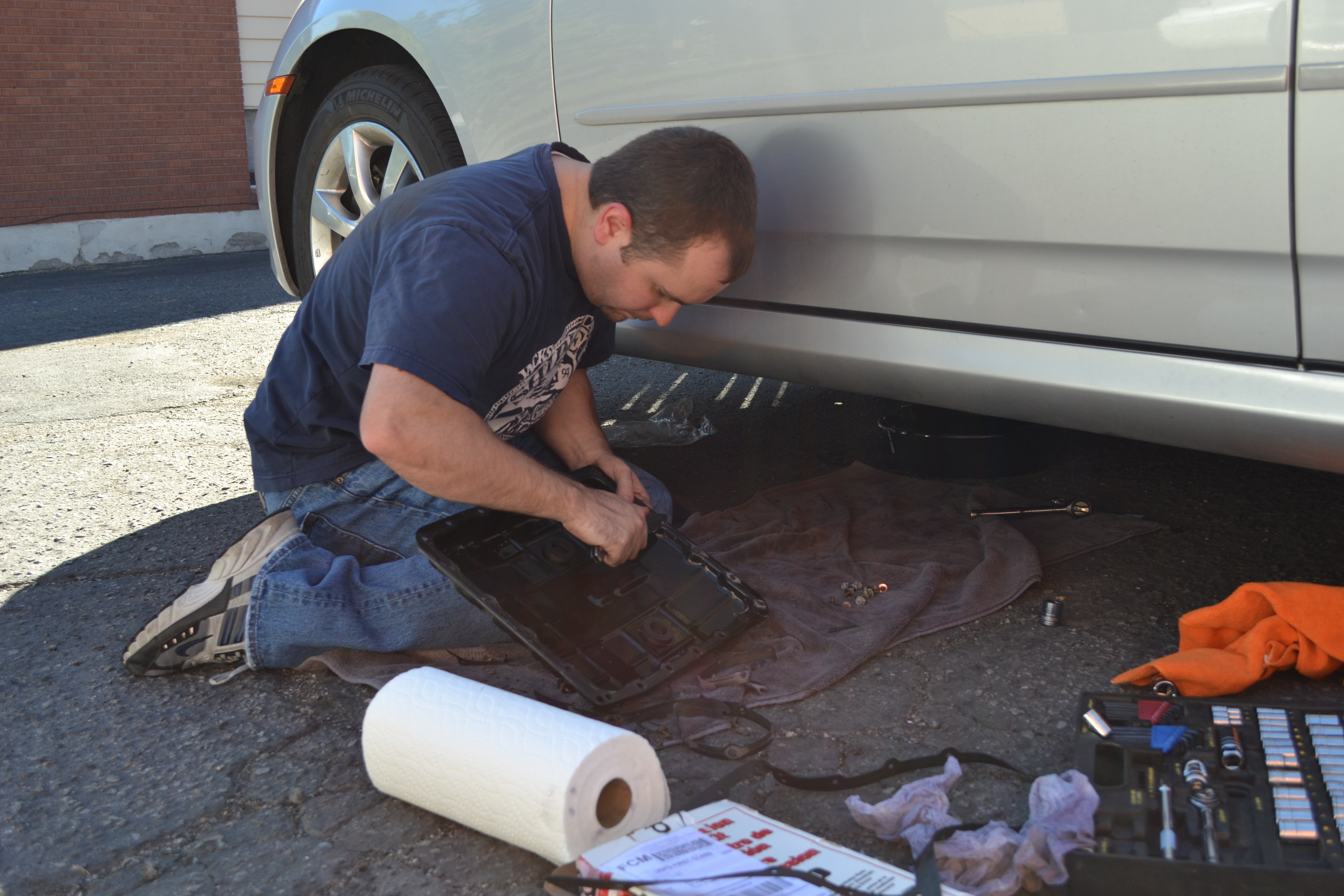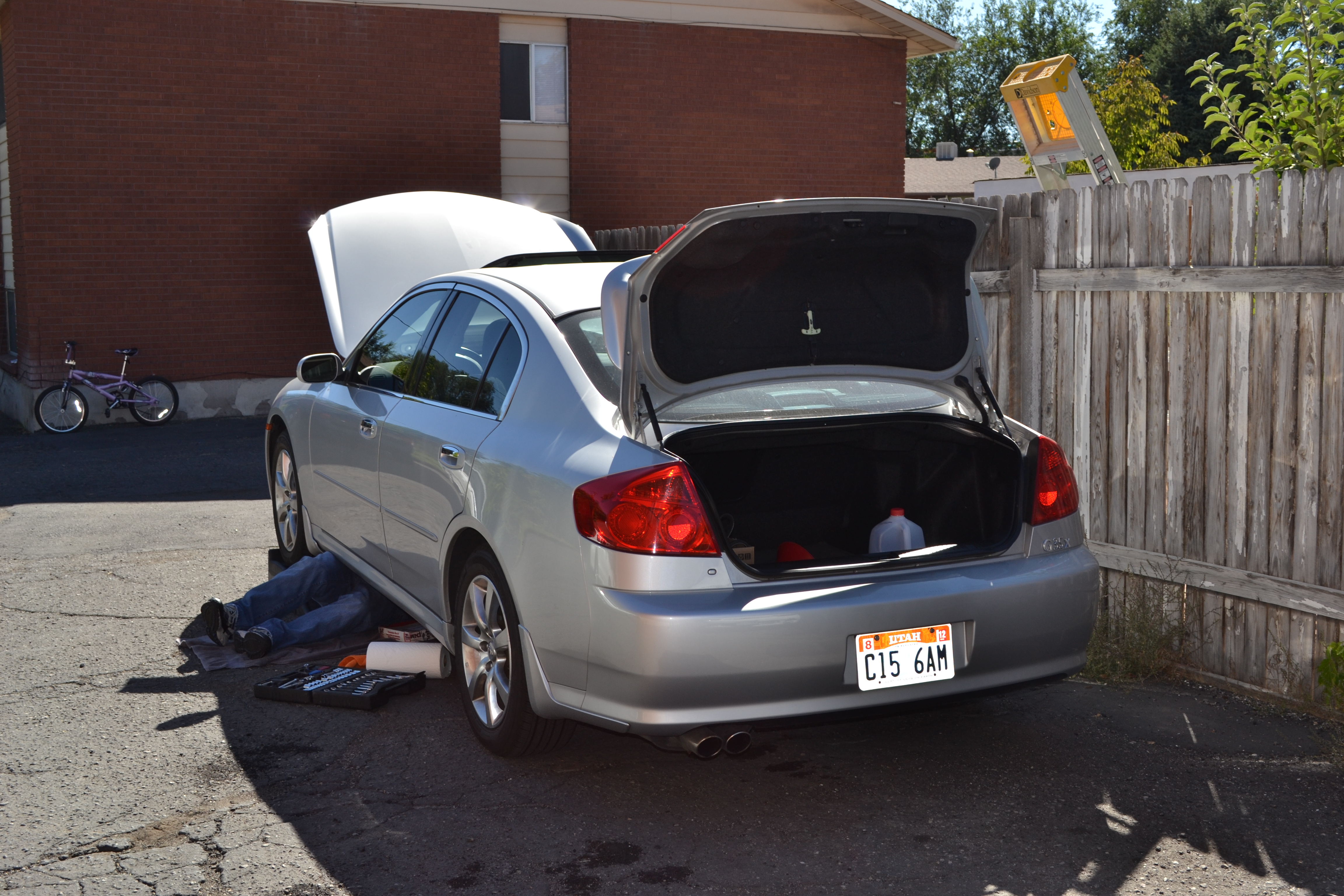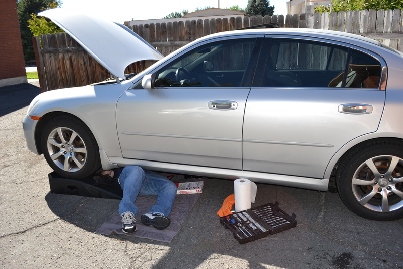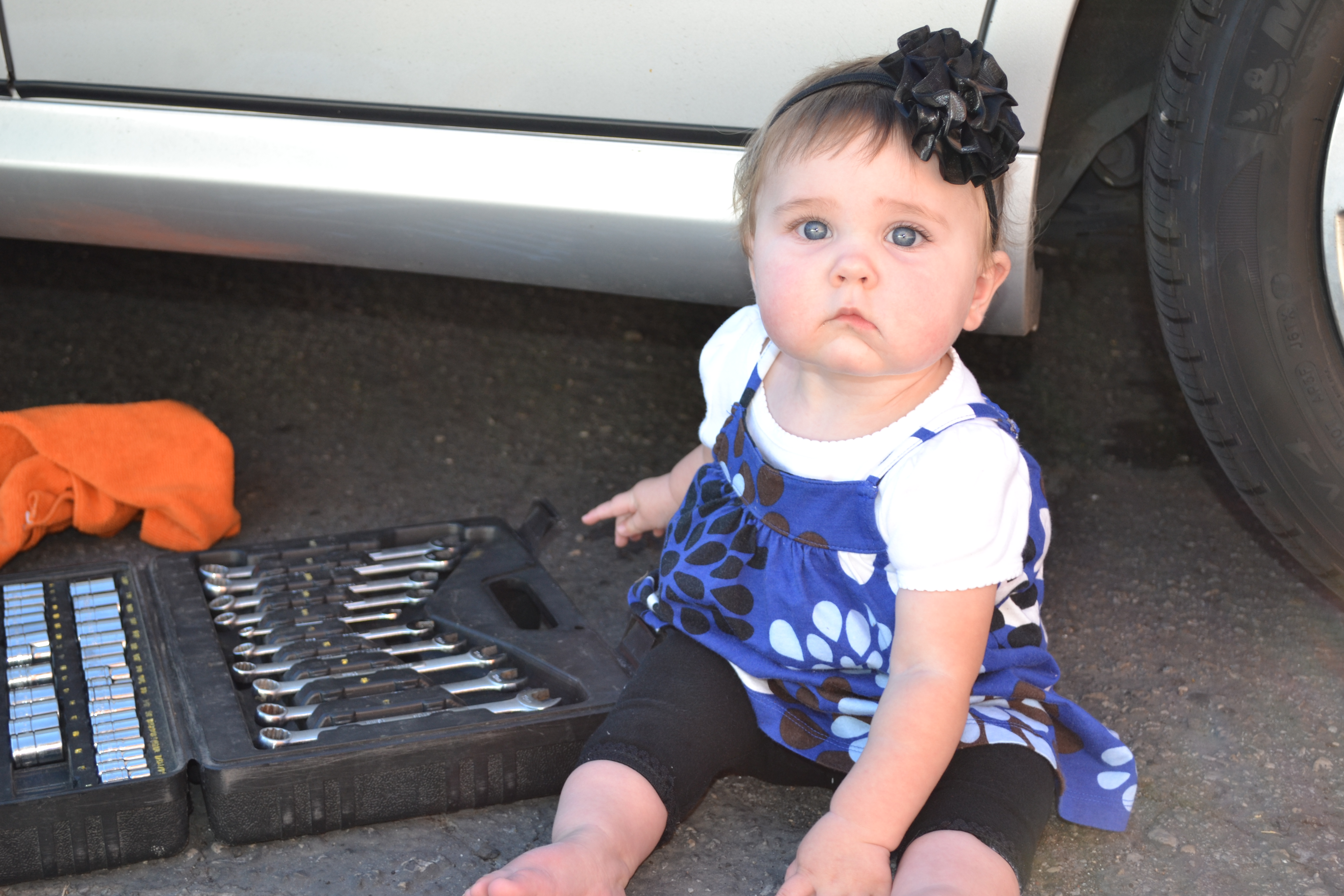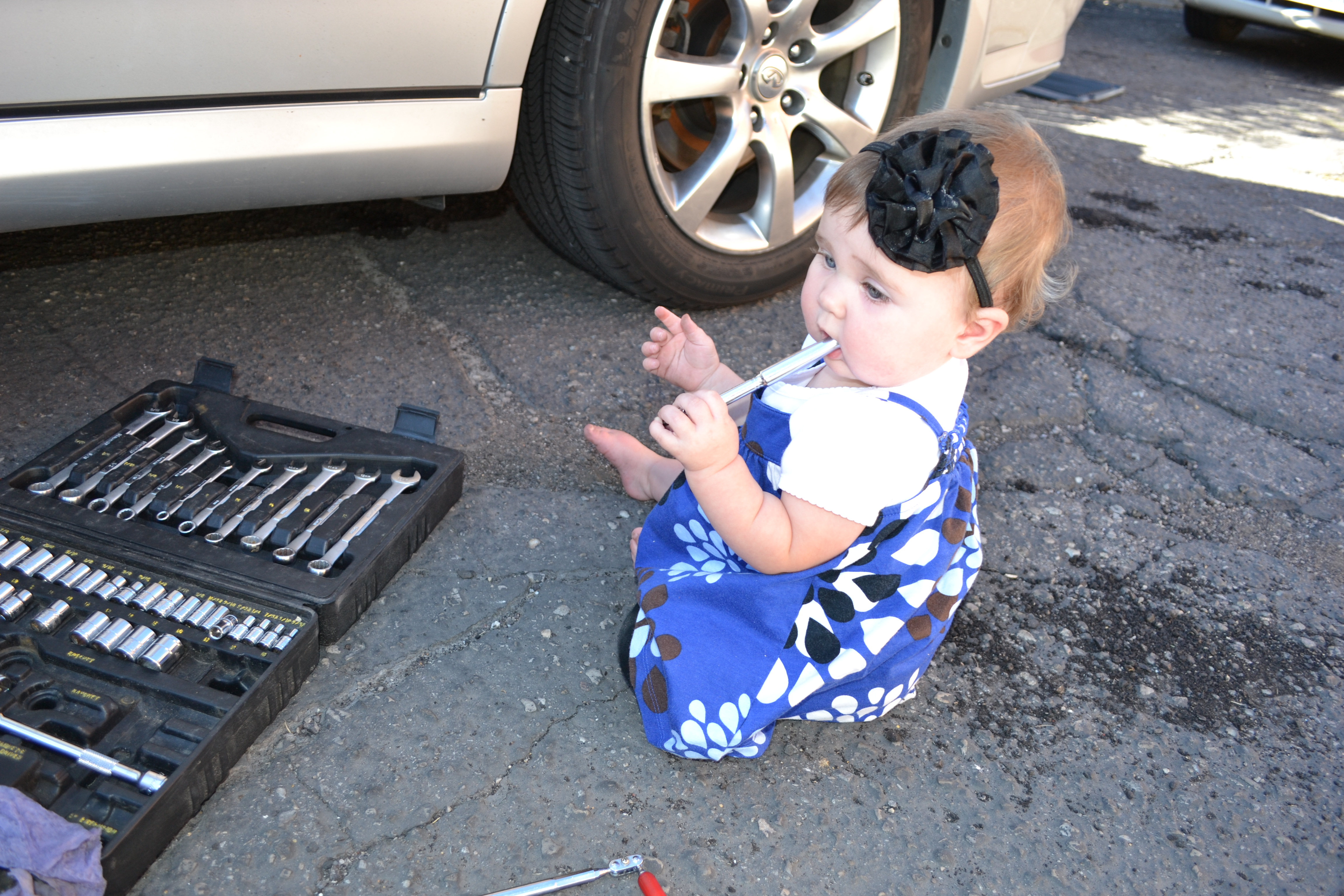 For some reason I can't resist snapping pictures of Keith working on his car, especially when Emily comes to play with the tools. These pics were taken in September 2011.