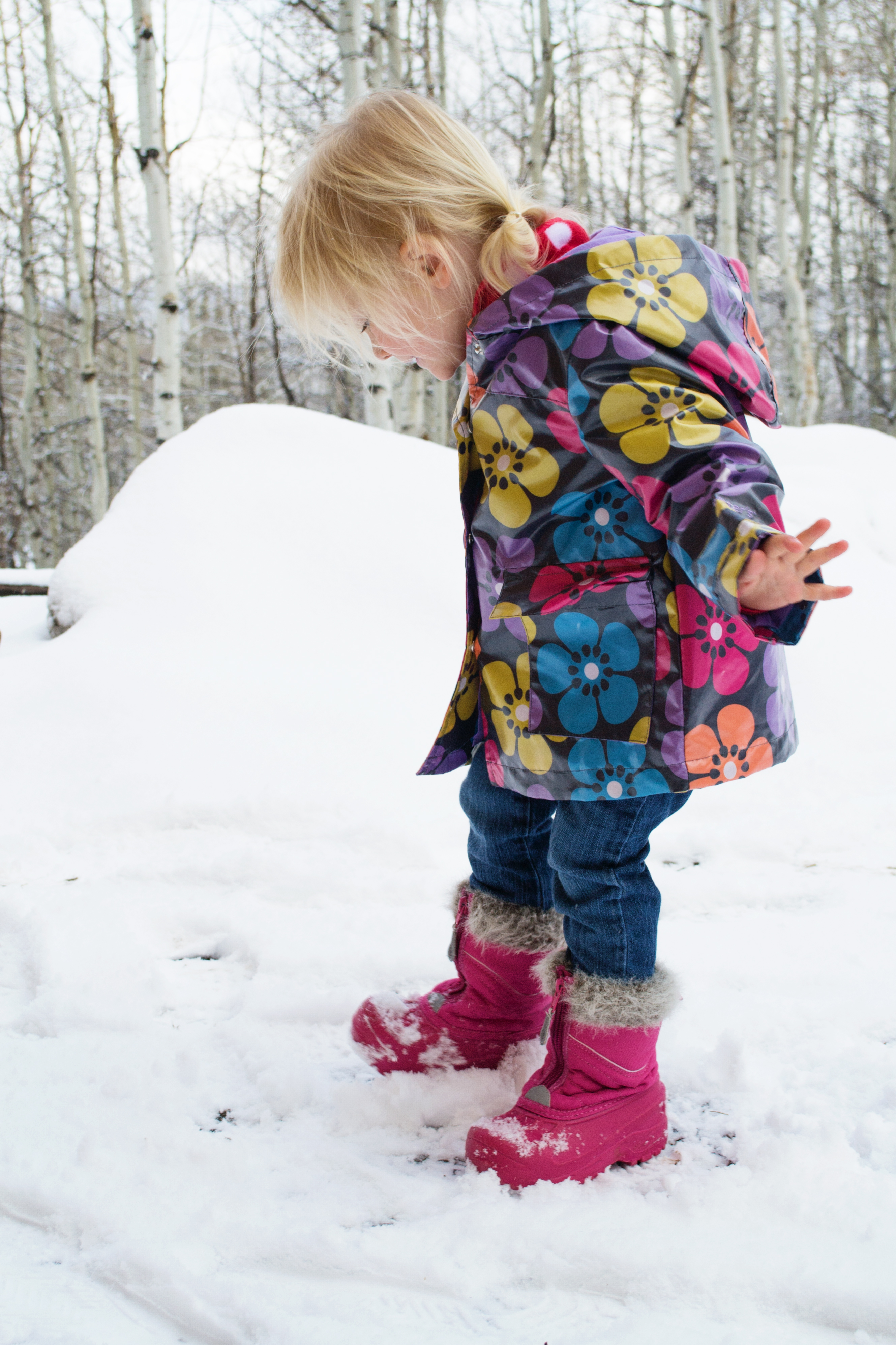 ◱ Alayna learns why gloves are so helpful, after exploring the snow, of course