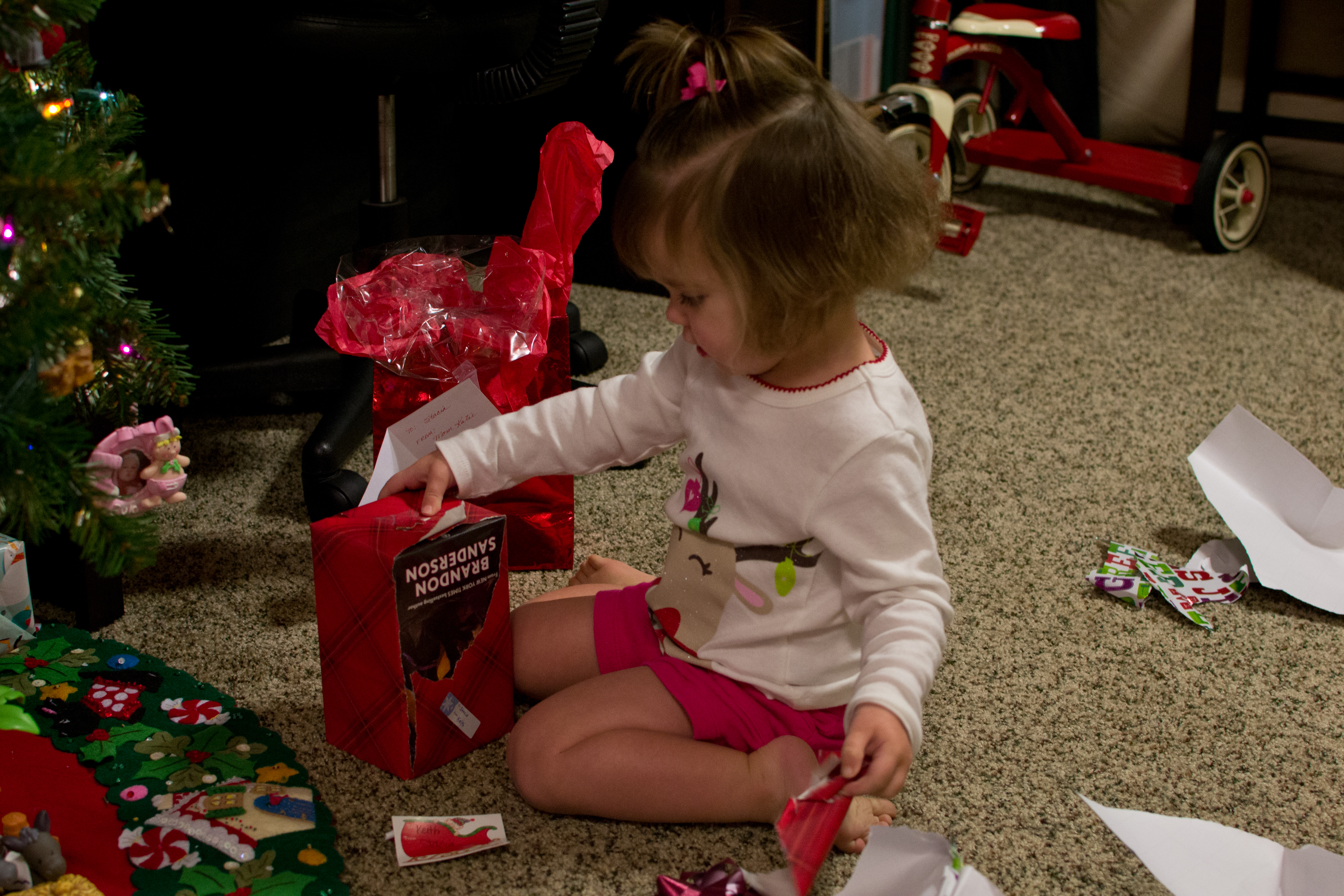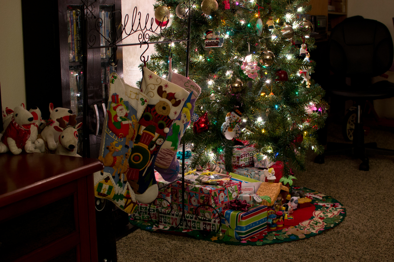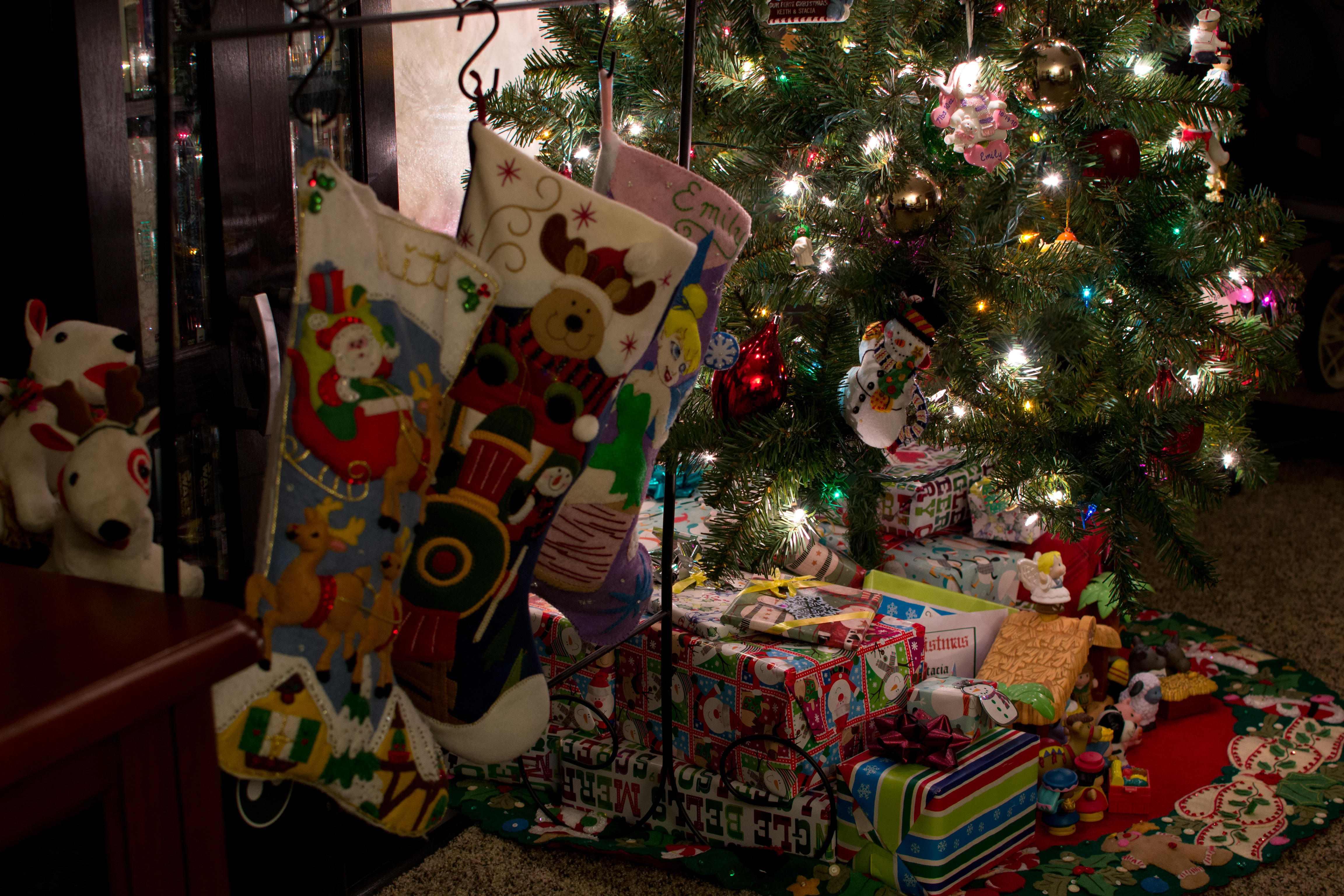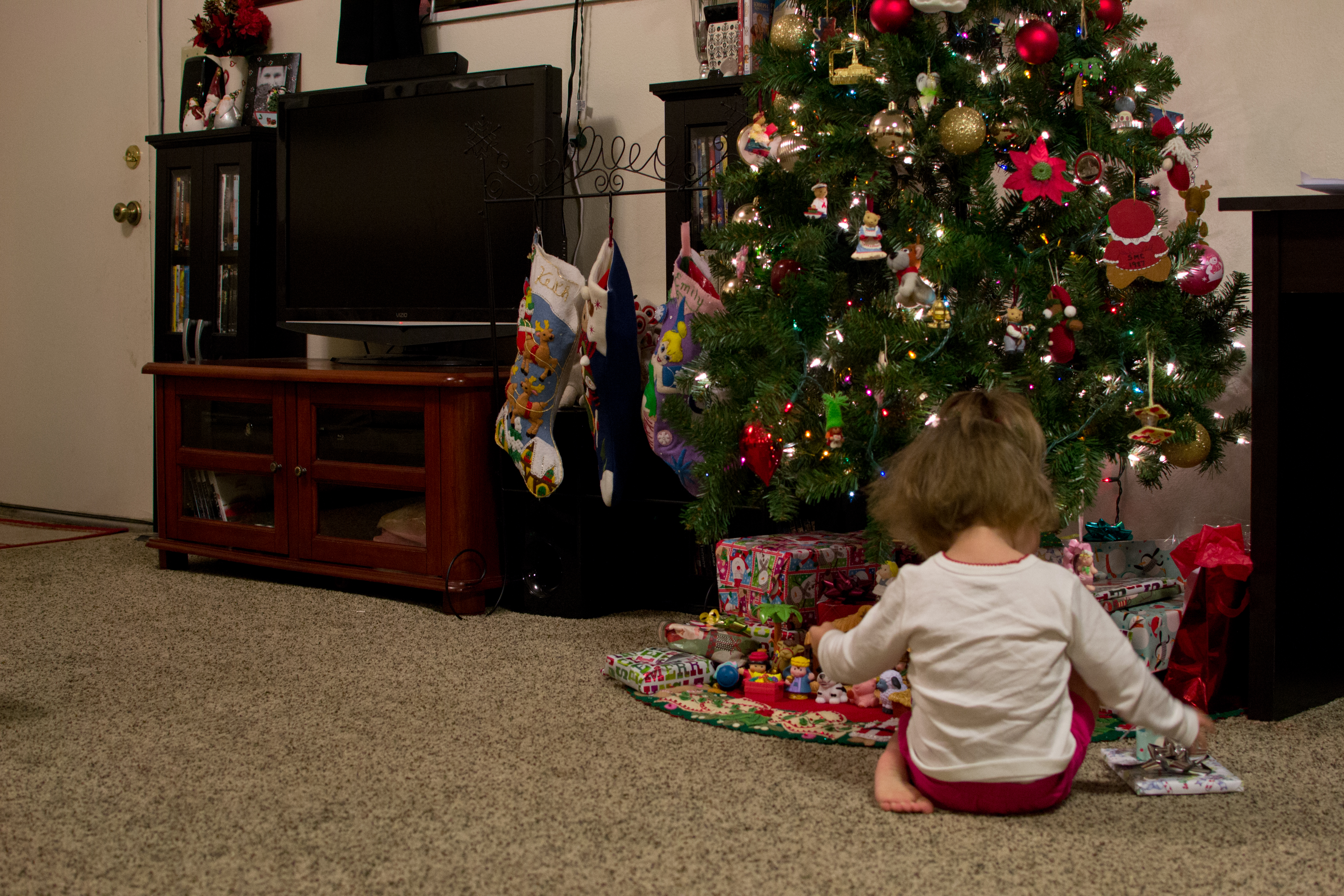 ◱ Stockings were hung by the chimney (aka DVD stand) with care
