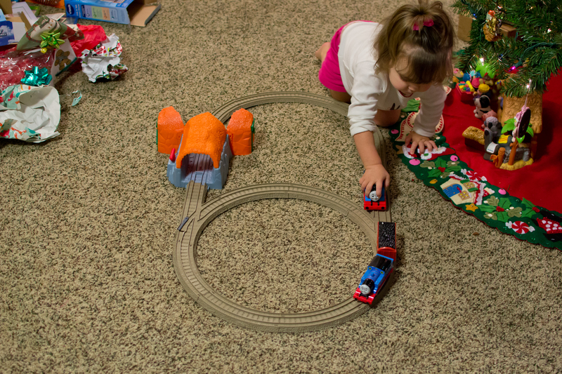◱ Yay! She got out her other Thomas and they went on a road trip together