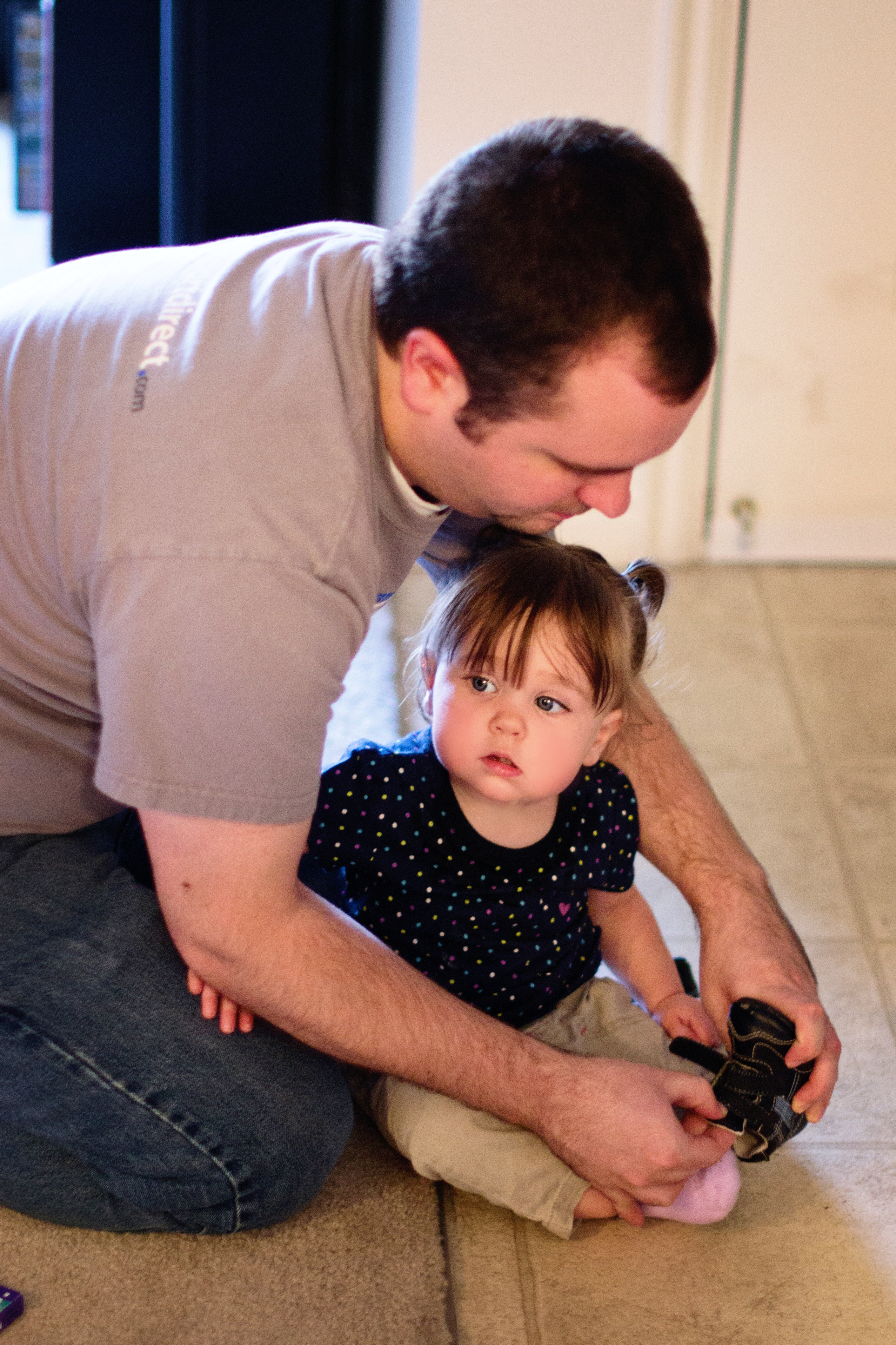 ◱ Daddy helps with taking shoes off