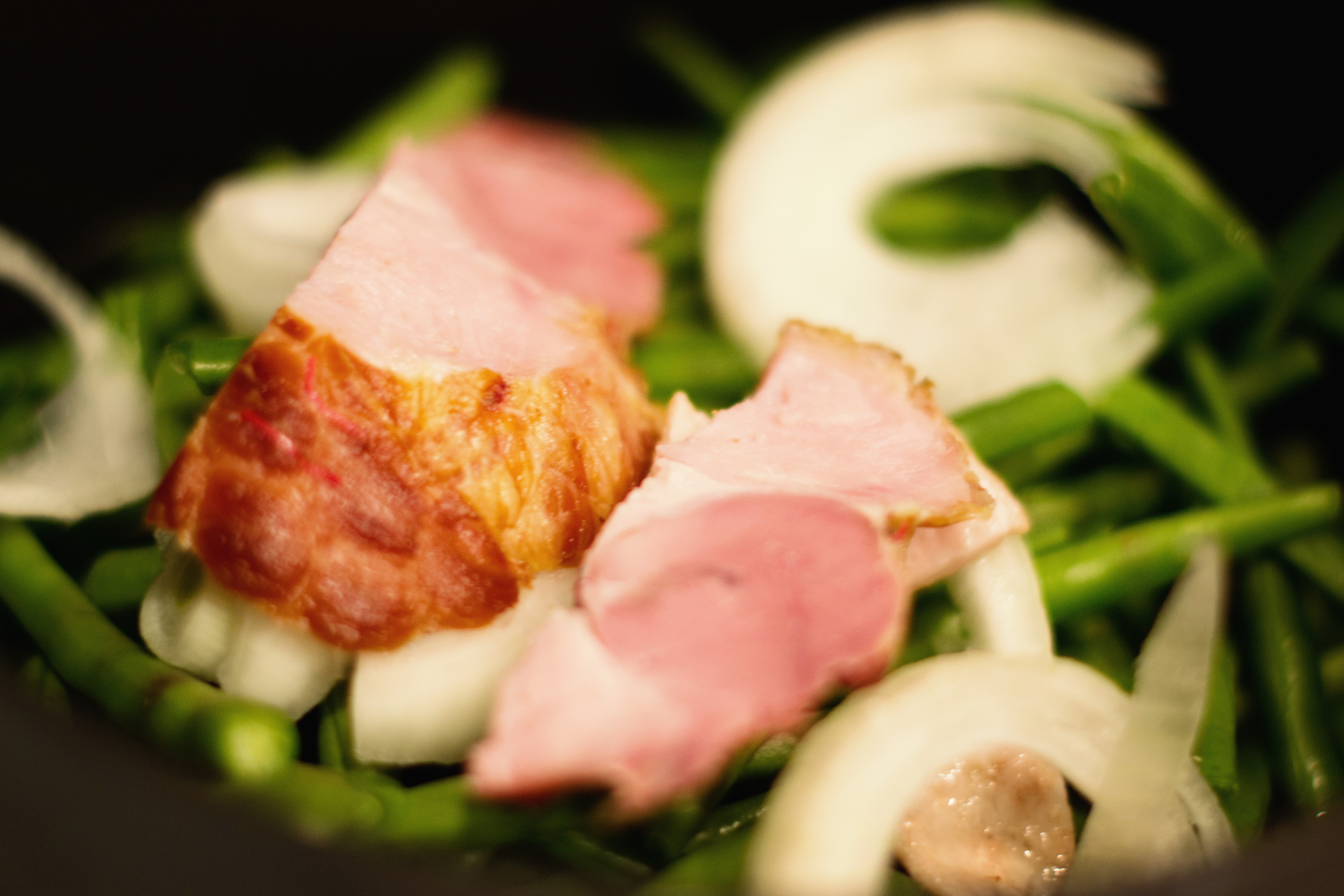 ◱ Green beans with a little ham and onions to flavor