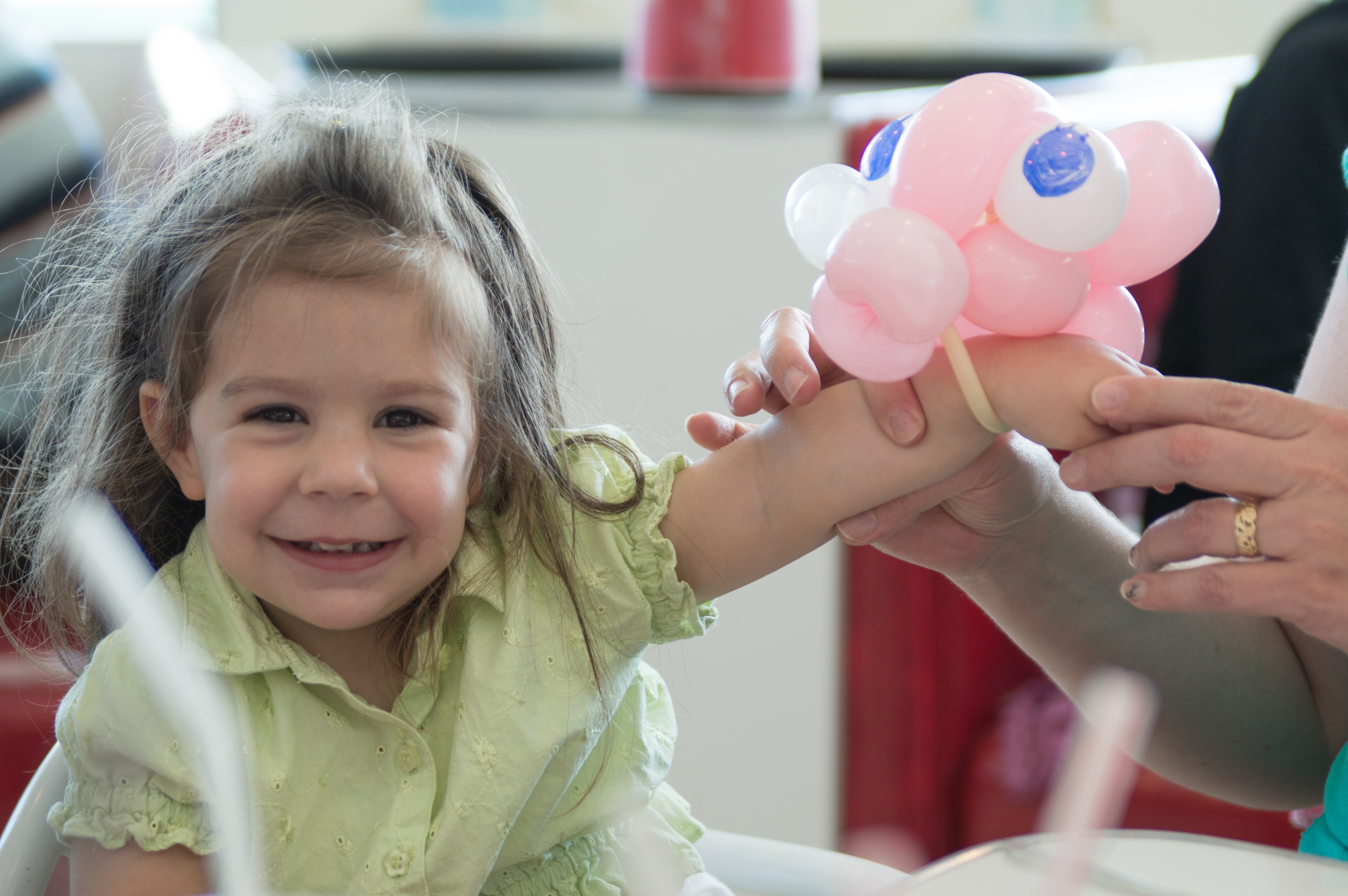◱ Em watches as her balloon is made