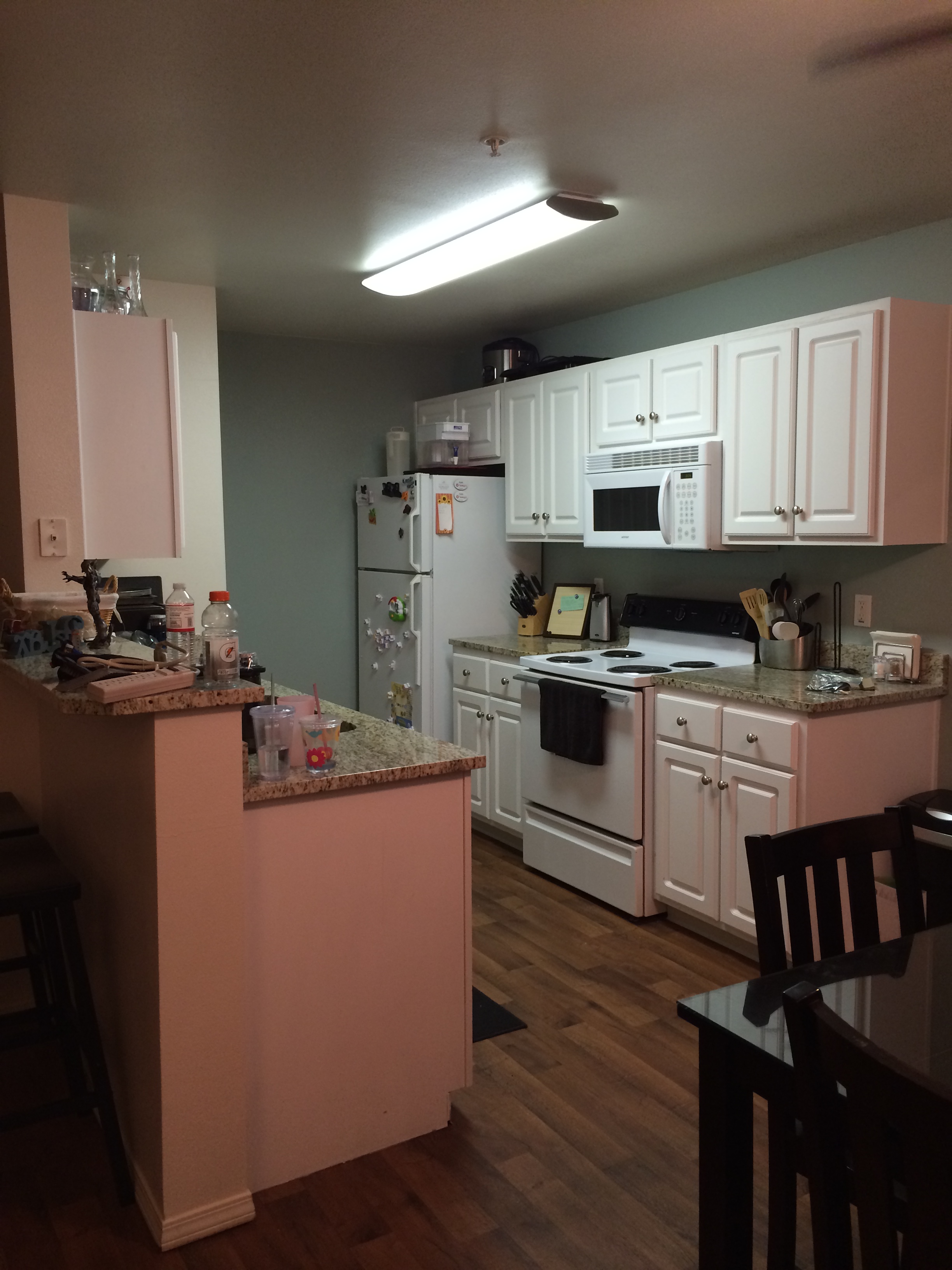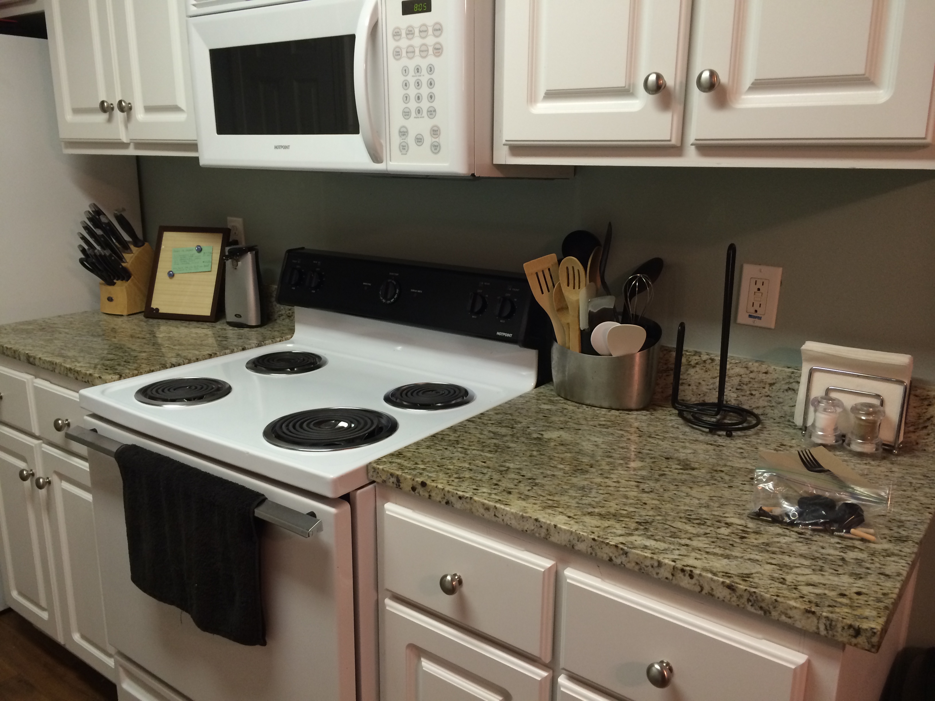 ◱ Across from stove, to the left of the pantry