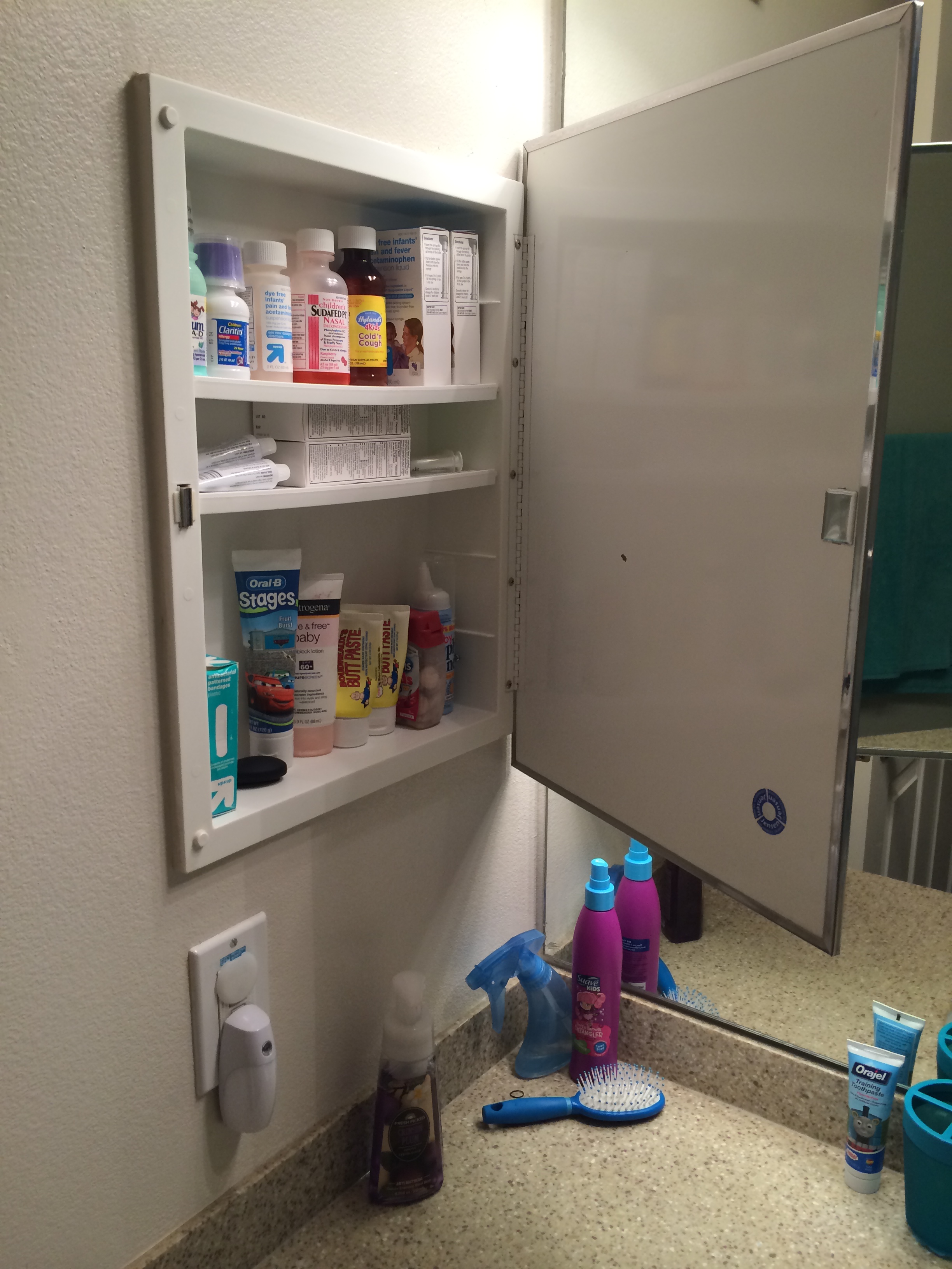 ◱ Hidden medicine cabinet behind side mirror