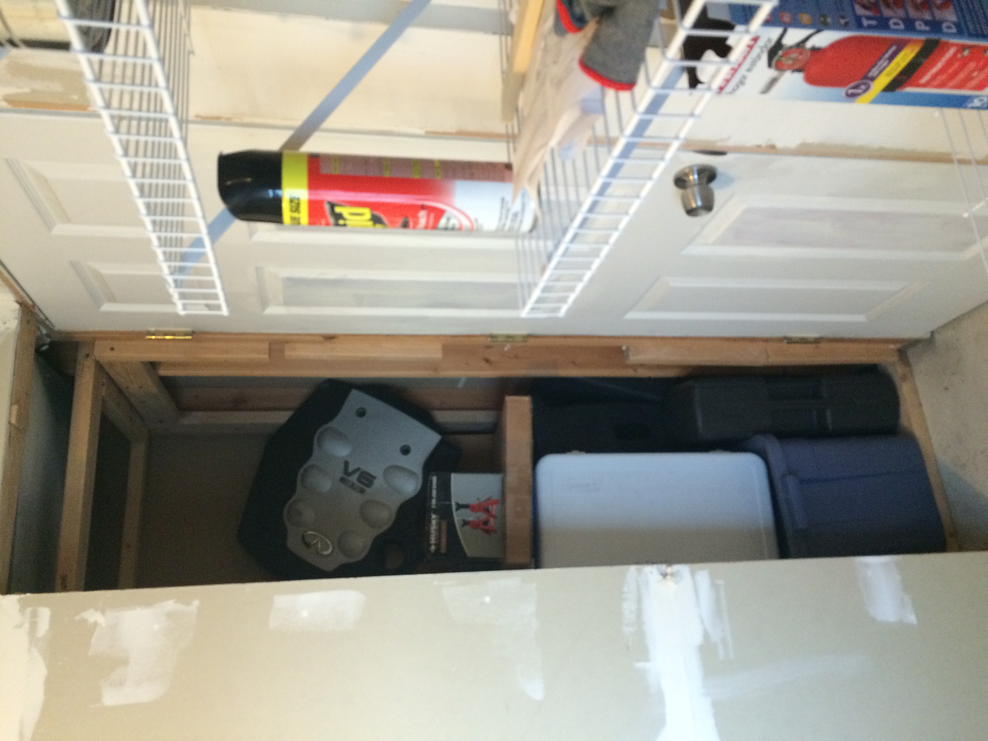◱ Basement, with back door on left and photography closet on right.
